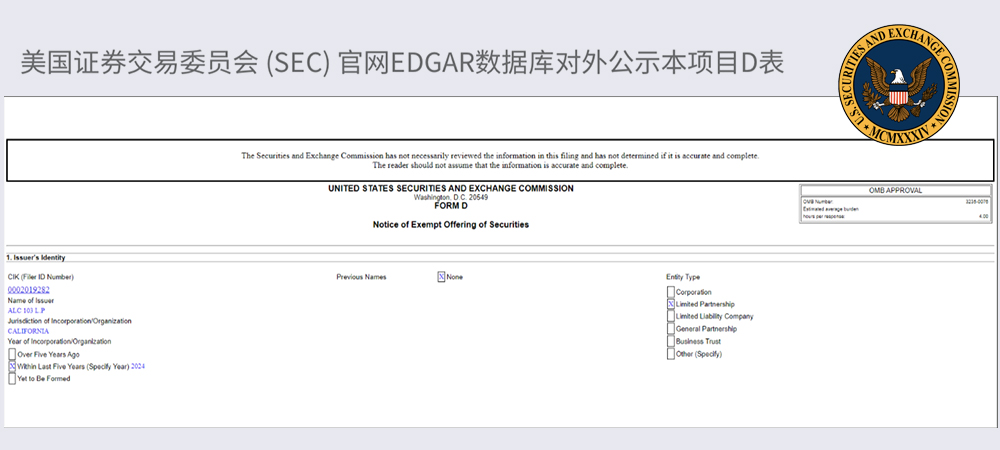 根據美國《1933年證券法》規定,作為免登記私募基金,本項目已成功完成D表注冊,實現100%證券發行合規。