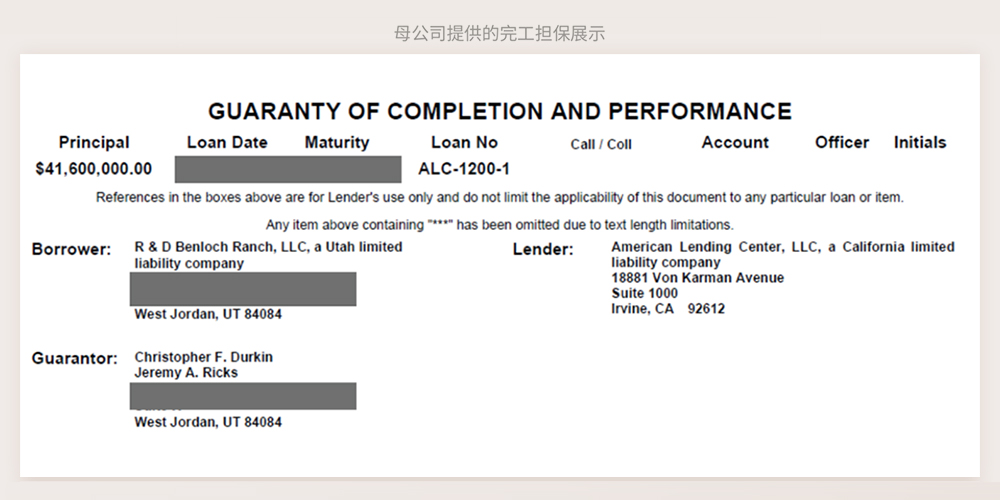 嚴格挑選的,代表EB-5資金利益的第三方建筑監理公司完工擔保協議